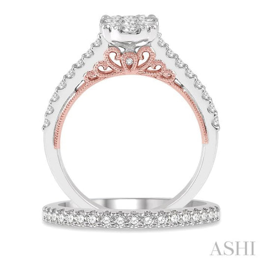 1 ctw Lovebright Diamond Wedding Set With 3/4 ctw Oval Shape Engagement Ring in 14K White and Rose Gold and 1/4 ctw Wedding Band in 14K White