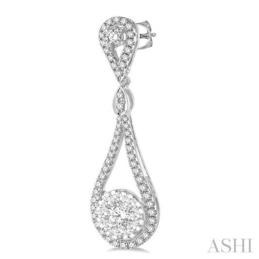 1 Ctw Loop Dangler Round Cut Diamond Lovebright Hanging Earrings in 14K White Gold