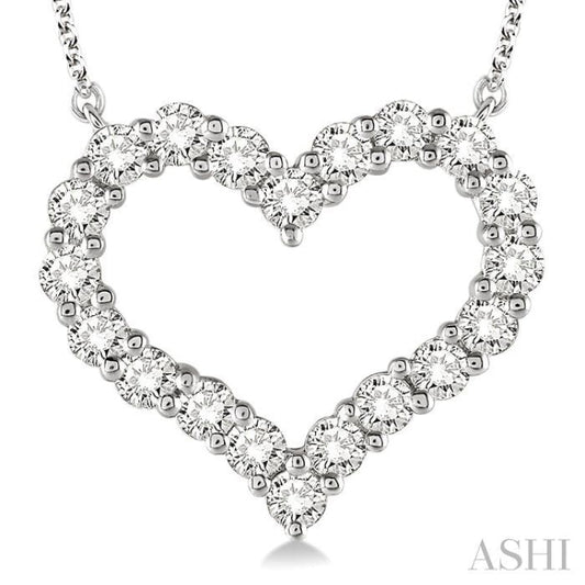 1 Ctw Round Cut Diamond Heart Necklace in 14K White Gold