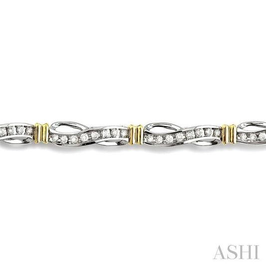 1 Ctw Round Cut Diamond Fancy Bracelet in 14K White and Yellow Gold