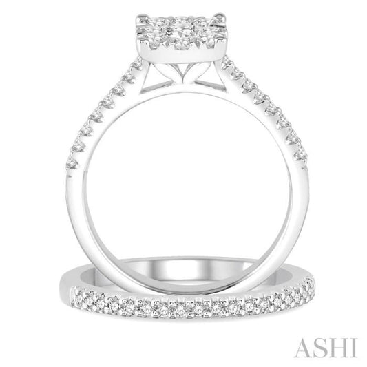 1 Ctw Round Cut Diamond Square Shape Lovebright Bridal Set with 3/4 Ctw Engagement Ring and 1/4 Ctw Wedding Band in 14K White Gold
