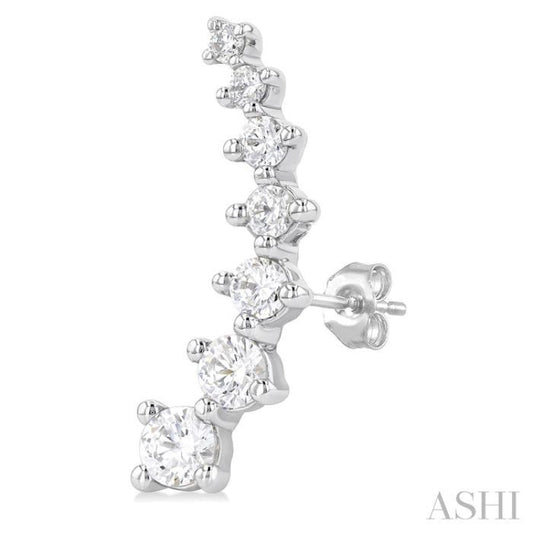 1 Ctw Round Cut Diamond Petite Fashion Climbers in 14K White Gold