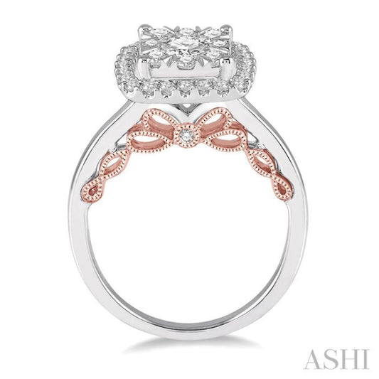1 Ctw Round Diamond Lovebright Square Halo Engagement Ring in 14K White and Rose Gold