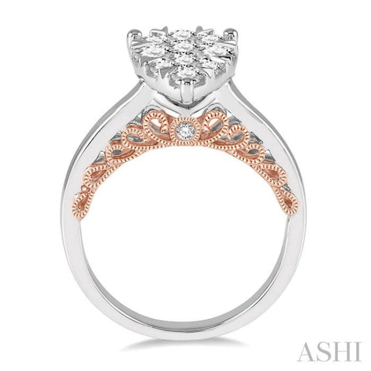 1 Ctw Round Diamond Lovebright Pear Shape Engagement Ring in 14K White and Rose Gold