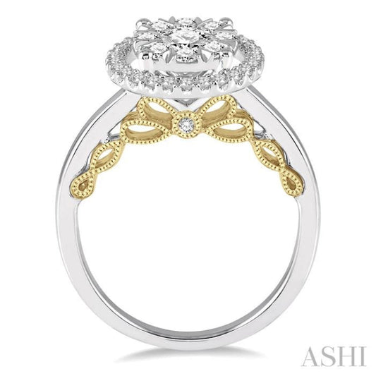 1 Ctw round Diamond Lovebright Solitaire Style Halo Engagement Ring in 14K White and Yellow Gold