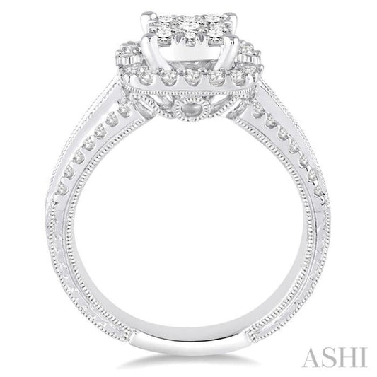 1 Ctw Square Shape Diamond Lovebright Engagement Ring in 14K White Gold