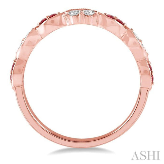 1.35 MM Round Cut Ruby and 1/5 Ctw Round Cut Diamond Half Eternity Wedding Band in 14K Rose Gold