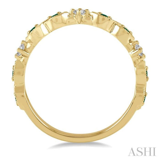 1.35 MM Round Cut Green Emerald and 1/10 Ctw Round Cut Diamond Half Eternity Wedding Band in 14K Yellow Gold
