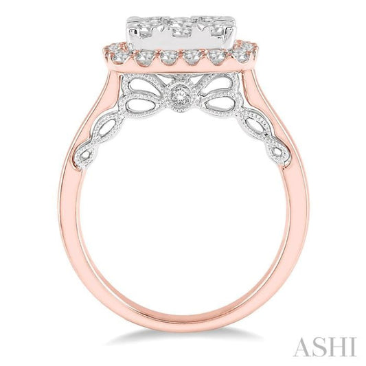 1 1/2 Ctw Cushion Shape Lovebright Round Cut Diamond Cluster Ring in 14K Rose and White Gold