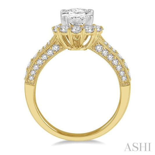 1 1/10 ctw Split Shank Oval Semi-Mount Round Cut Diamond Ring in 14K Yellow and White Gold