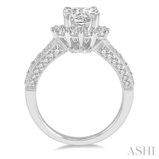 1 1/10 ctw Split Shank Cushion Shape Semi-Mount Round Cut Diamond Ring in 14K White Gold