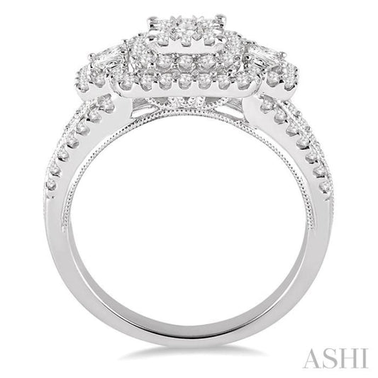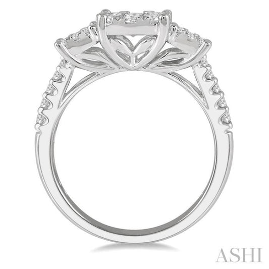 1 1/10 ctw Square Shape Diamond Lovebright Engagement Ring in 14K White Gold