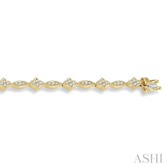 1 1/10 ctw Single Cut Diamond Marquise and Floral Link Bracelet in 10K Yellow Gold