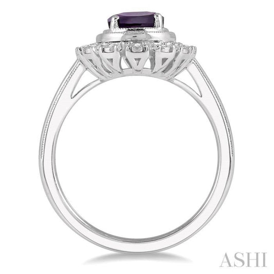 1/10 Ctw Lattice Oval Shape 8x6mm Amethyst & Round Cut Diamond Semi Precious Ring in 10K White Gold
