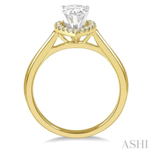 1/10 Ctw Pear Shape Round Cut Diamond Semi-Mount Engagement Ring in 14K Yellow and White Gold