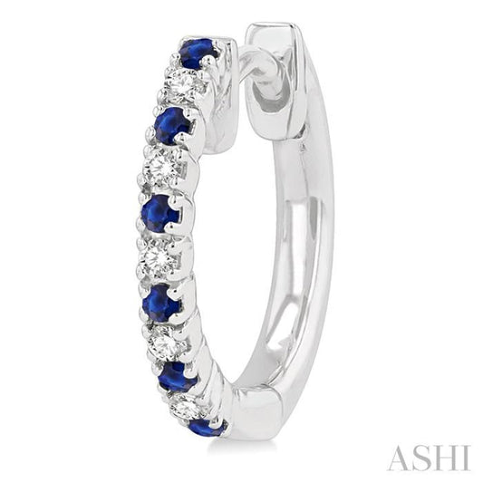 1/10 ctw Petite 1.35 MM Sapphire and Round Cut Diamond Precious Fashion Huggies in 10K White Gold