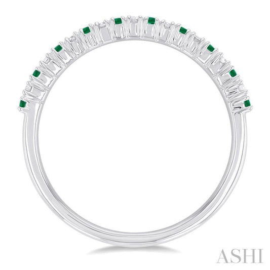 1/10 Ctw Petite 1.35 MM Emerald and Round Cut Diamond Precious Stack Band in 10K White Gold