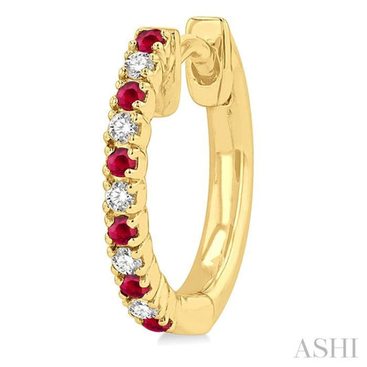 1/10 ctw Petite 1.35MM Ruby and Round Cut Diamond Precious Fashion Huggies in 10K Yellow Gold