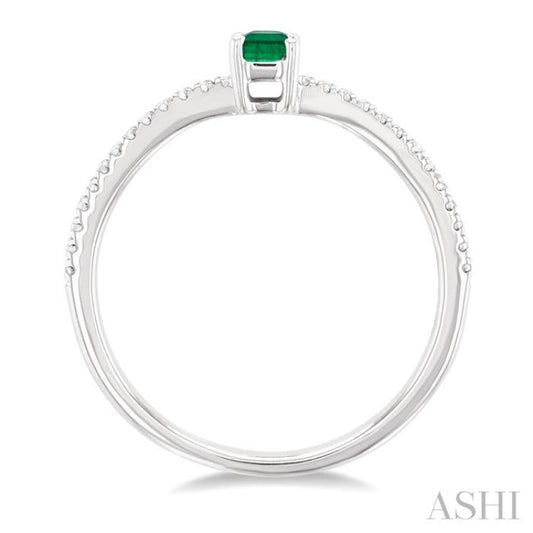 1/10 ctw Petite 5X3MM Emerald Cut Emerald and Round Cut Diamond Precious Fashion Ring in 10K White Gold