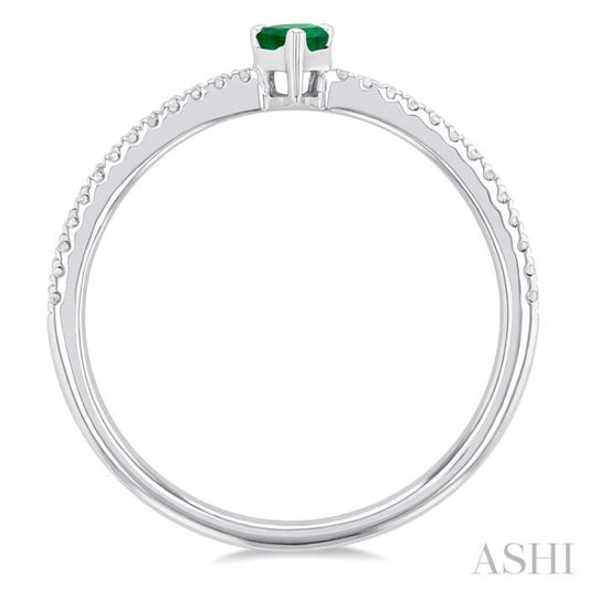 Vendor:Ashi1/10 ctw Petite 5X3MM Pear Cut Emerald and Round Cut Diamond Precious Fashion Ring in 10K White Gold