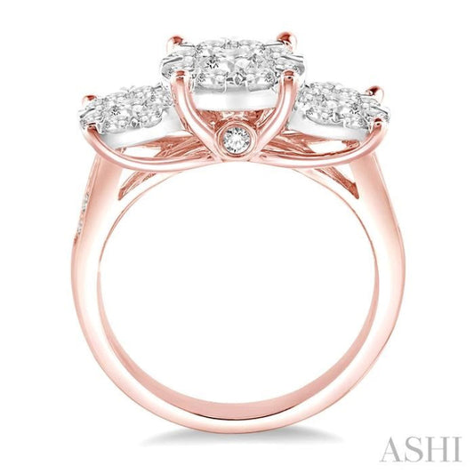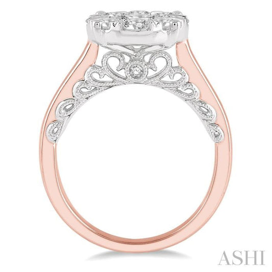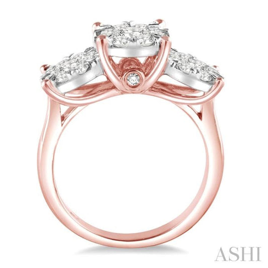 1 1/2 Ctw Lovebright Diamond Cluster Ring in 14K Rose and White Gold