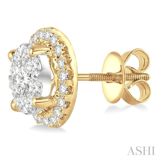 1 1/2 Ctw Lovebright Round Cut Diamond Earrings in 14K Yellow and White Gold