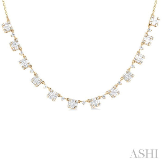 1 1/2 Ctw Fusion Baguette and Round Cut Diamond Halfway Necklace in 14K Yellow Gold