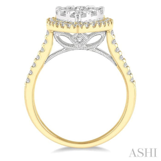 1 1/2 Ctw Pear Shape Round Cut Diamond Lovebright Cluster Ring in 14K Yellow and White Gold