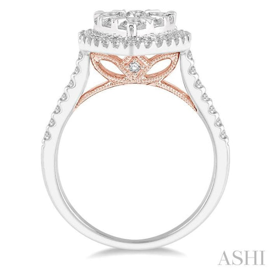 1 1/2 Ctw Pear Shape Round Cut Diamond Lovebright Ring in 14K White and Rose Gold