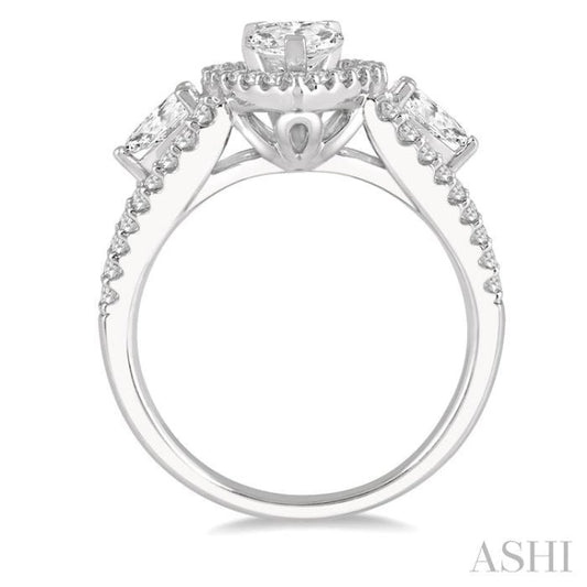 1 1/2 Ctw Pear Shape Diamond Engagement Ring in 14K White Gold