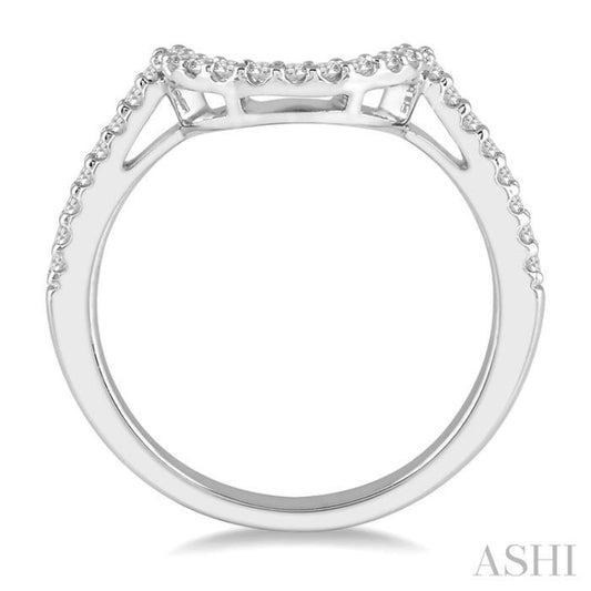 1/10 Ctw U-Shape Center Round Cut Diamond Wedding Band in 14K White Gold