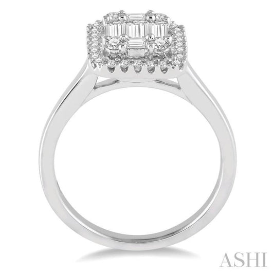 1/2 ctw Baguette & Round Cut Diamond Ring in 14K White Gold