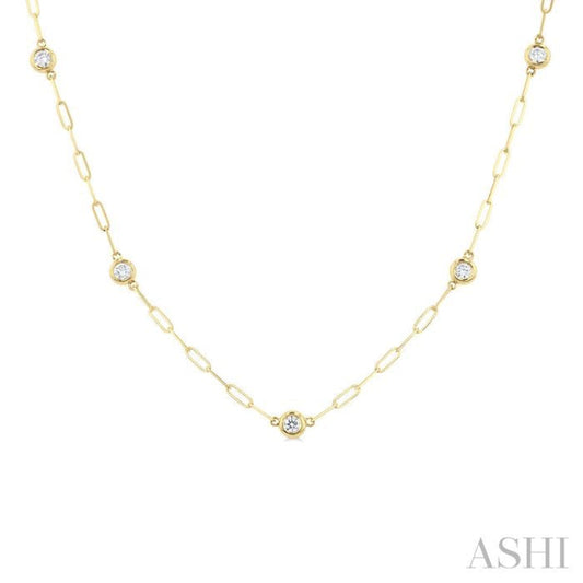 1/2 ctw Bezel Set Round Cut Diamond Paper Clip Station Necklace in 14K Yellow Gold
