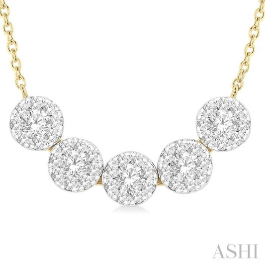 1/2 Ctw 5-Stone Circular Mount Lovebright Round Cut Diamond Necklace in 14K Yellow & White Gold