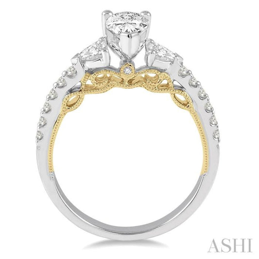 1/2 Ctw Diamond Pear Shape Semi-Mount Engagement Ring in 14K White and Yellow Gold