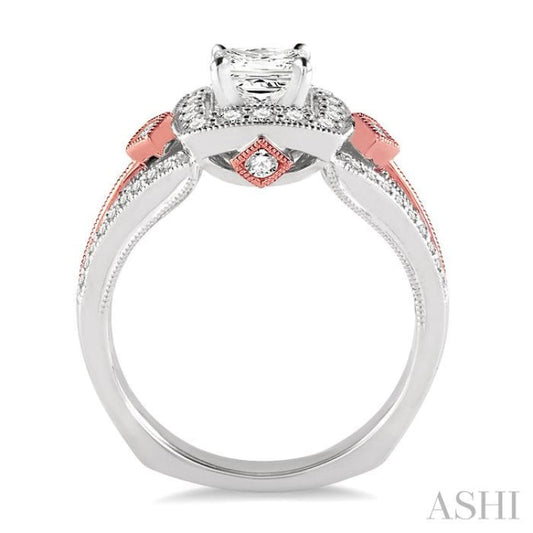1/2 Ctw Diamond Semi-mount Engagement Ring in 14K White and Rose Gold