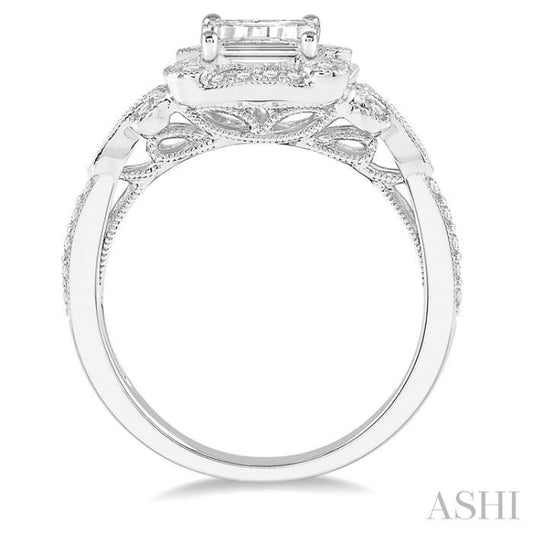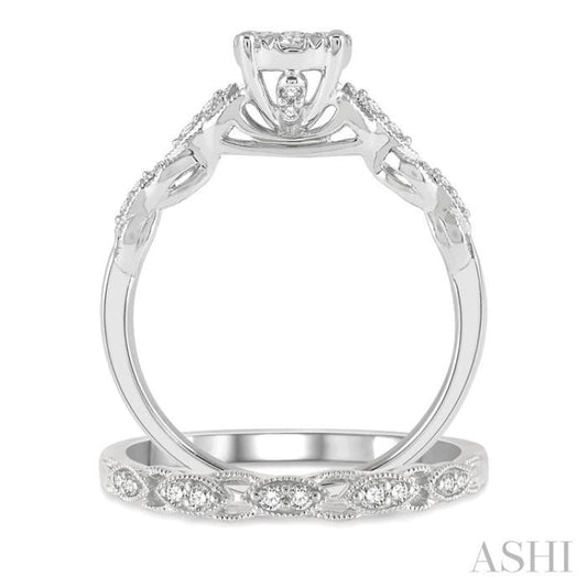 1/2 ctw Lattice Lovebright Round Cut Diamond Wedding Set With 3/8 ctw Circular Mount Engagement Ring and 1/10 ctw Wedding Band in 14K White Gold