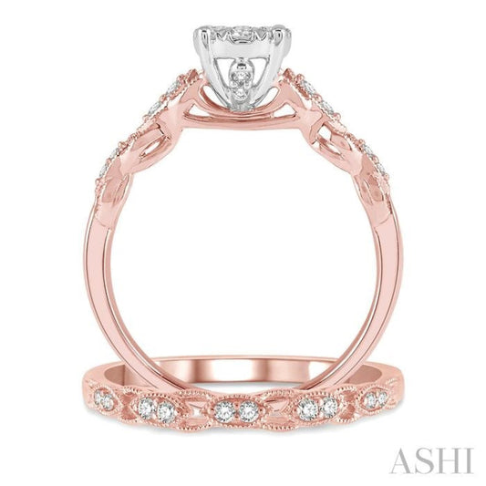 1/2 ctw Lattice Lovebright Diamond Wedding Set With 3/8 ctw Circular Mount Engagement Ring and 1/10 ctw Wedding Band in 14K Rose and White Gold