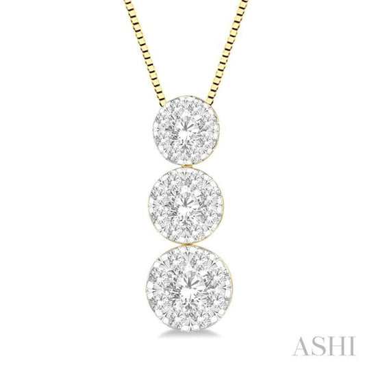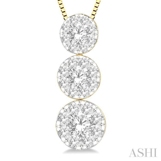 1/2 ctw Lovebright 3 stone Essential Round Cut Diamond Pendant with Chain in 14K Yellow and White Gold