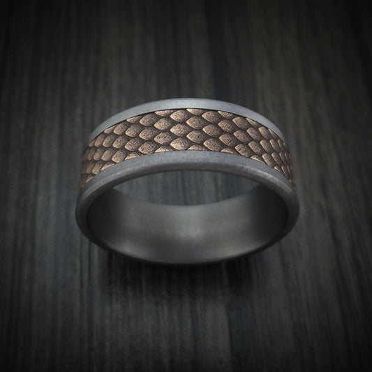 Tantalum and Dragon Scale Textured 14K Rose Gold Men's Ring