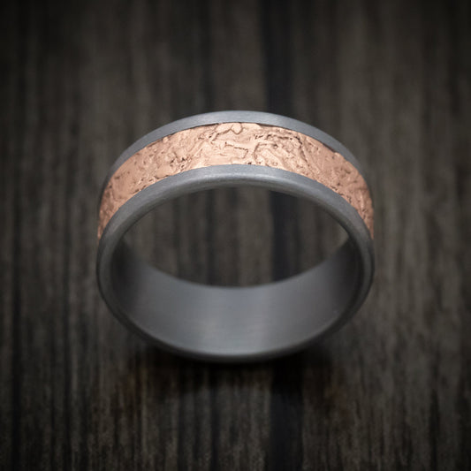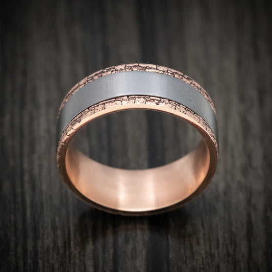 Tantalum and Splatter Textured 14K Rose Gold Mens Ring