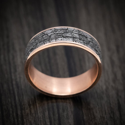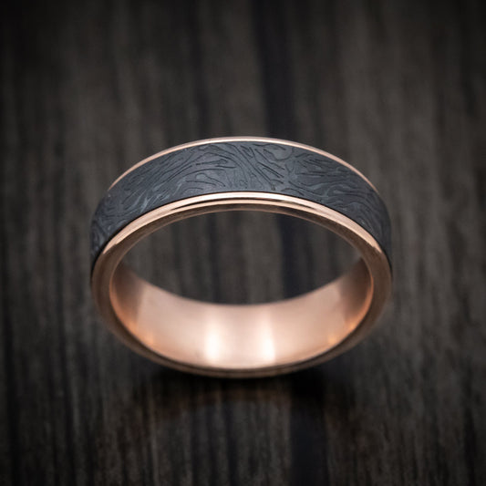 14K Rose Gold and Darkened Tantalum Marbled Pattern Mens Band