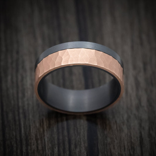 Darkened Tantalum and Hammered 14K Rose Gold Inlay Men's Ring