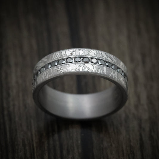 Tantalum Men's Ring With Faux-Meteorite Pattern and Black Diamonds Custom Band