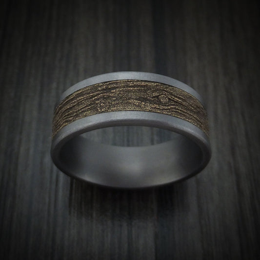 Tantalum and Wood Knot Textured 14K Yellow Gold Men's Ring
