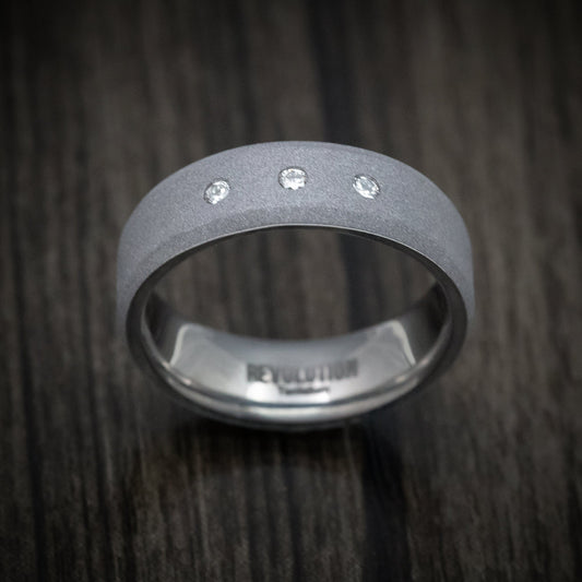 Tantalum Men's Ring with DiamondCast Inlay Custom Made Hammered Band