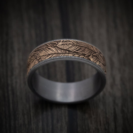 Tantalum and 14K Gold Feather Pattern Ring