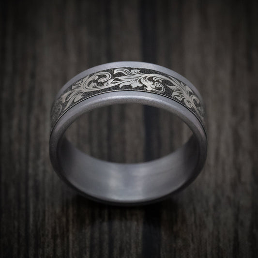 Tantalum and Black Titanium Vintage Floral Mens Band