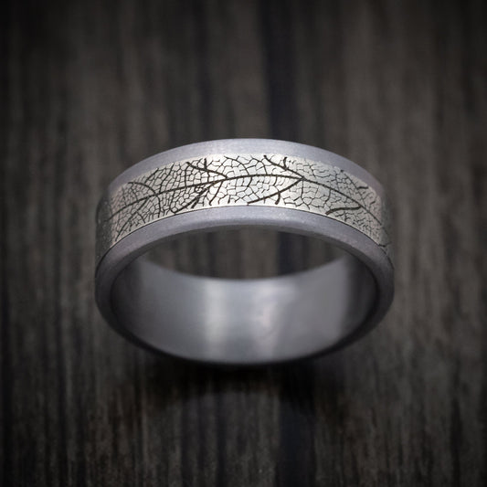 Tantalum and Black Titanium Leaf Pattern Mens Ring