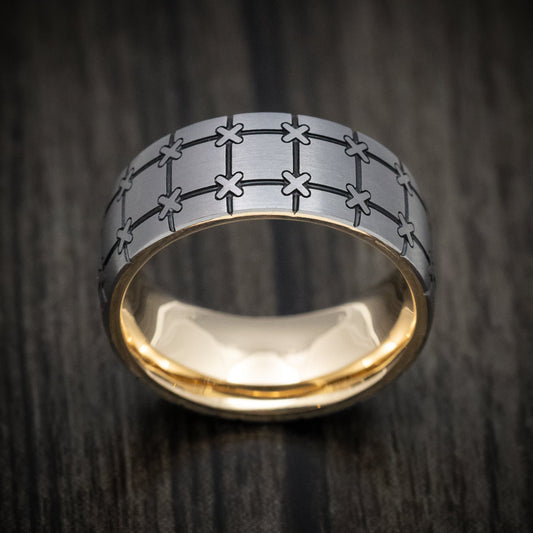 Tantalum and Gold Sleeve Geometric Pattern Men's Ring Custom Made Band